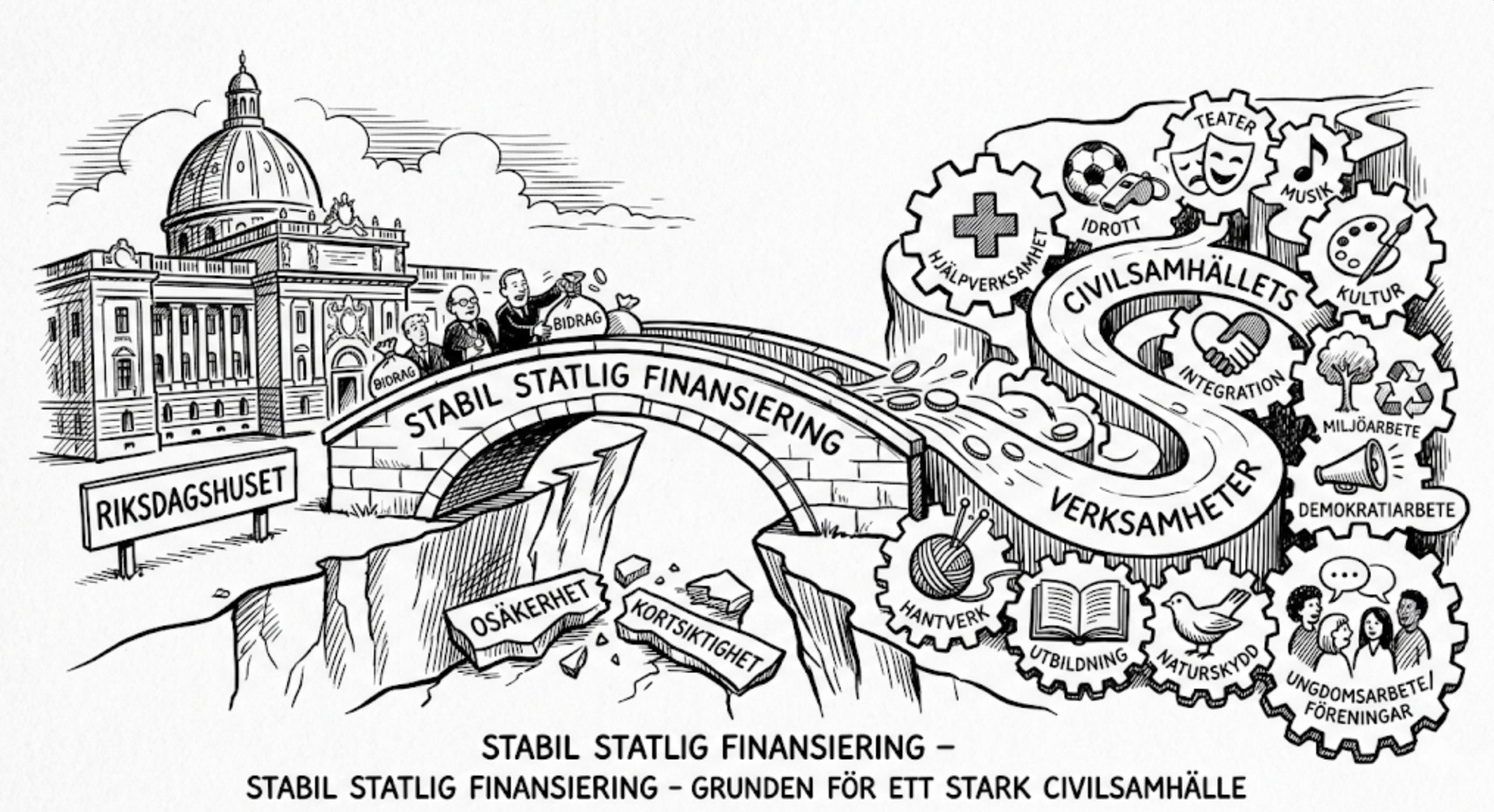 Riksdagen behandlar i snabb takt en mängd betänkanden som utskotten har tagit fram för beslut i kammaren. Nästan undantagslöst inleds alla betänkanden av en standardformulering: ”Utskottet föreslår att riksdagen avslår samtliga motionsyrkanden, främst med hänvisning till pågående eller redan genomförda åtgärder.” Så lyder också inledningen i Kulturutskottets betänkande KrU8 : ”Civila samhället, trossamfund och folkbildning”. Riksdagen debatterar kring betänkandet på onsdag, oppositionens yrkanden med anledning av reservationer i betänkandet kommer att avslås. Något annat sker inte i riksdagen där det mesta av allt som sker är förutsägbart. Ändå borde det vara av intresse att ta del av debatten och själva betänkandet. Det är ju här som villkoren för civilsamhällets utveckling eller avveckling tydliggörs. För visst spelar det roll hur regeringen villkorar finansieringen av civilsamhällets verksamhet. ”Utskottet noterar vidare att bidragsgivningen till det civila samhället är stabil och att bidrag nästan uteslutande ges i form av generella bidrag.” ”Utskottet” – det är de fyra partier som står bakom Tidöavtalet. Men hur ser det egentligen ut, vad anser oppositionen, vad anser alla föreningar runtom i landet?